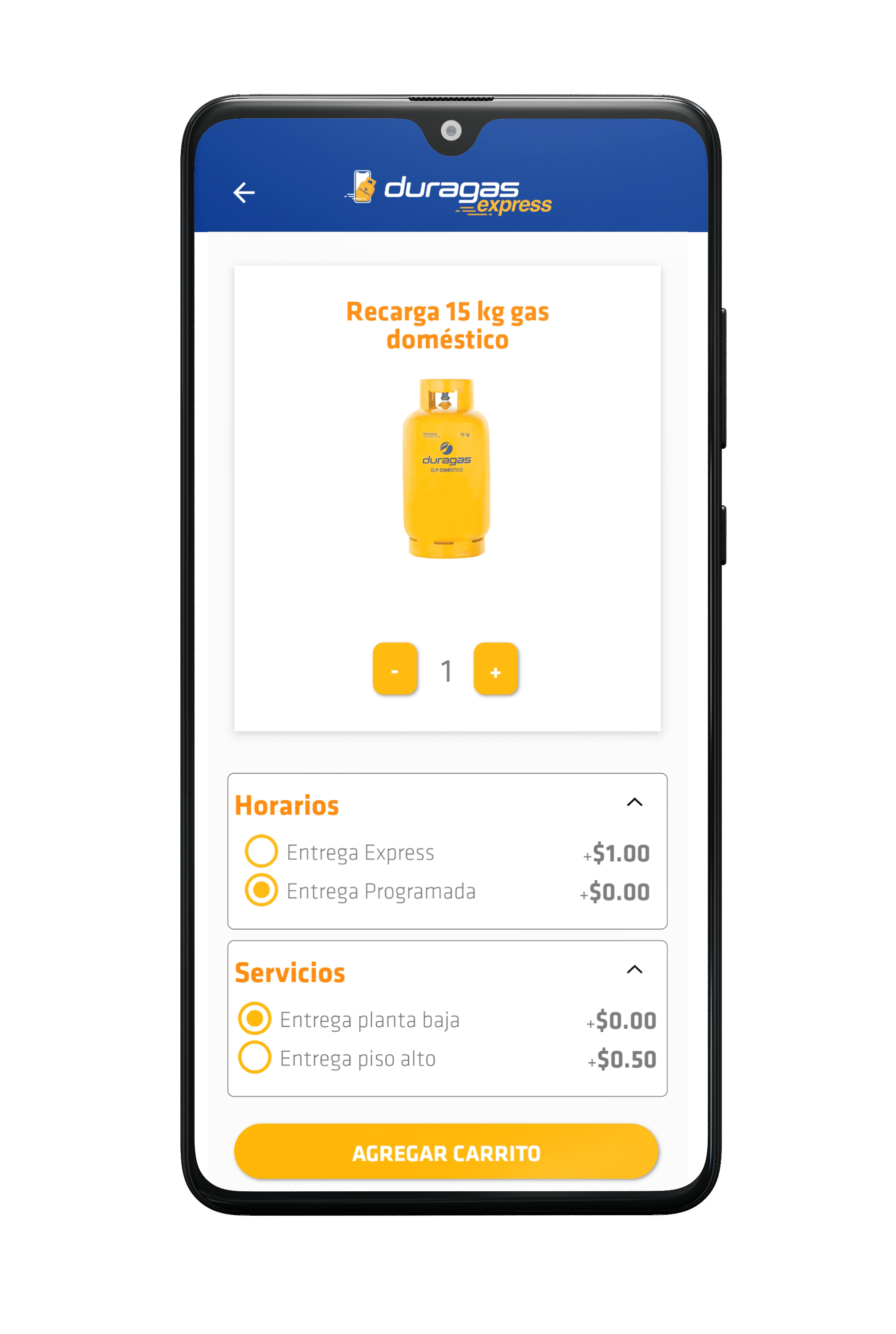 Con nuestra App Duragas Express pide tu cilindro amarillo a un clic